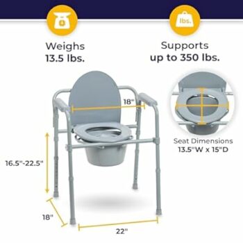 - Chaise de commode de chevet en acier pliant médical Drive - Prend en charge jusqu'à 350 lb - Conception 3 en 1 - Portable et facile à nettoyer