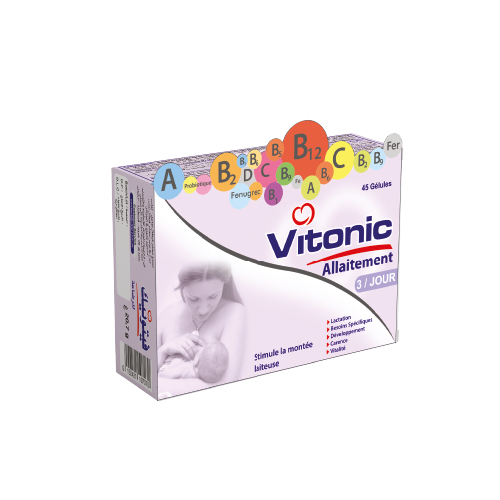 VITONIC ALLAITEMENT contribue au bien-être et à la vitalité, stimule la montée laiteuse, réponds aux besoins spécifiques de la femme allaitante, contribue à la croissance du bébé, pallie certaines carences en vitamines.